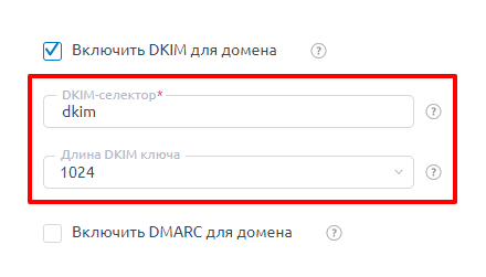 - DKIM-селектор - желаемое значение DKIM (используется чаще всего в тех случаях, когда на одном домене работает несколько почтовых серверов);